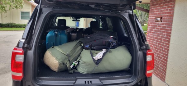 Chuck and Mark went to pick up the SUVs. Mark picked up a mommy van. We started out with a BMW X5 because that’s what we drove down in at the beginning of the cruise. Well Chuck was convinced everything wouldn’t fit so he upgraded to a tank! An Expedition. It did really well and we were pleased it all fit!