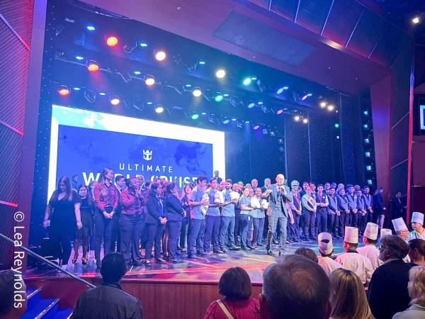Remember cruises when ice sculptures were on the midnight buffet when traveling years ago? We had a beautiful ice sculpture of Royal Caribbeans logo. It’s was great to see this again.