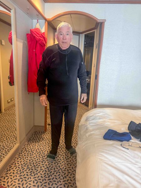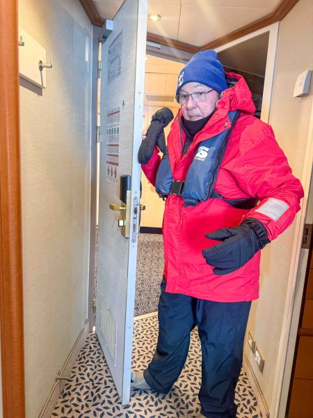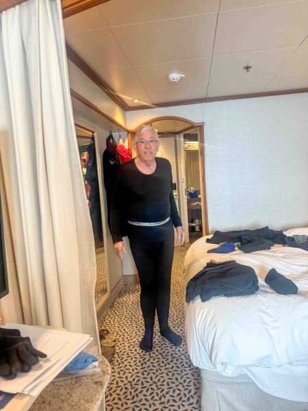 - Waddle back upstairs, (luckily we are living on deck 4, mudroom – deck 3) peel off layers that may be wet from water or from perspiring profusely under all the layers, shower, put on dry clothes