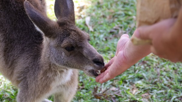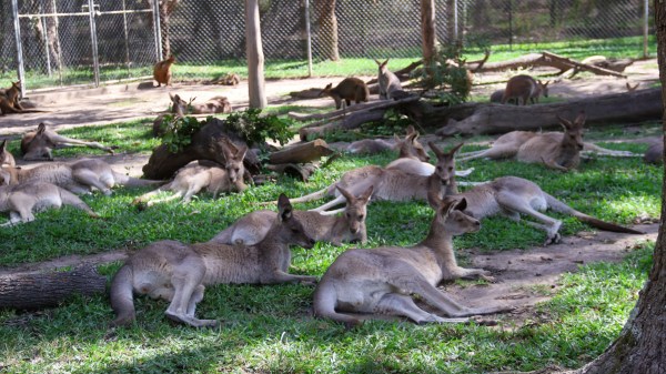 Then came the kangaroos. These guys are gloriously lazy but surprisingly tolerant of tourists. We got to pet them and feed them some mysterious “giblets.” The kids were having a field day tugging on their ears while parents heroically guarded everyone from those terrifyingly powerful back legs. Smart parenting.