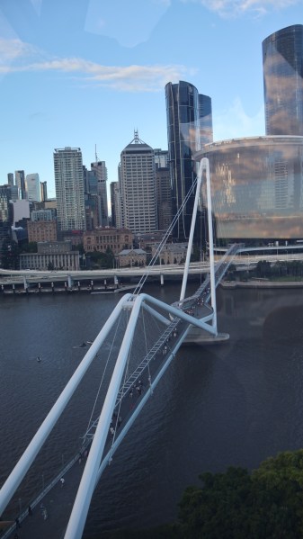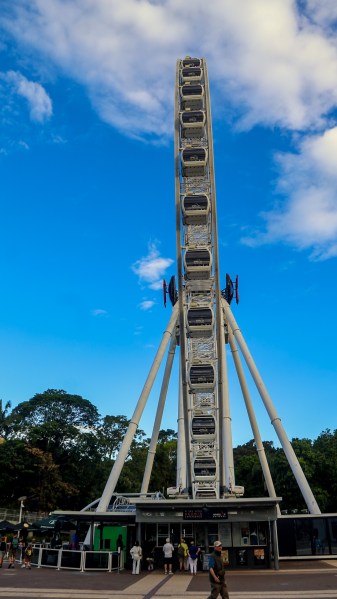 To cap off the day, we rode the Wheel of Brisbane. Floating high above the city in one of those giant pods gave us the most spectacular views — the river, the skyline, and that sweet “we survived jet lag” glow. It was the perfect gentle way to end a very full day.