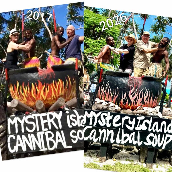 Back in the day, you’d hand them your phone and a couple of bucks, and they’d play along beautifully. Fast forward to 2026: the “Cannibal Tax” has officially been hit by inflation. It’s now $10 USD, and you have to provide your own photographer! Apparently, being the main course is a premium experience these days. Still, it was worth every penny for the laugh—even if I’m pretty sure the pot was a little tighter than it was nine years ago.